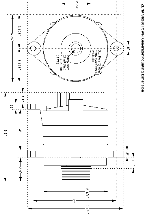 DC Power Generator / Alternator Mounting Dimensions |