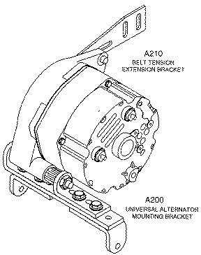 A200 Plated Steel Bolt-Together Retrofit Bracket -- used to install SR150 series power generators in place of old style DC Generators (typically found on Ag equipment and older vehicles) OR to facilitate installation in engines with two widely spaced mounting ears |