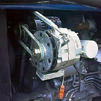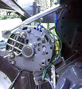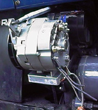 | The Welding Power Generator is mounted to the tractor's existing alternator using